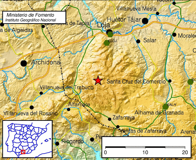 Un terremoto de 3,4 grados en la escala Richter, según el cálculo revisado por el Instituto Geográfico Nacional, se ha registrado a las 6.35 horas en Zafarraya. Según la información que recoge el instituto en su página web, el seísmo, se ha sentido en Loja y Málaga.