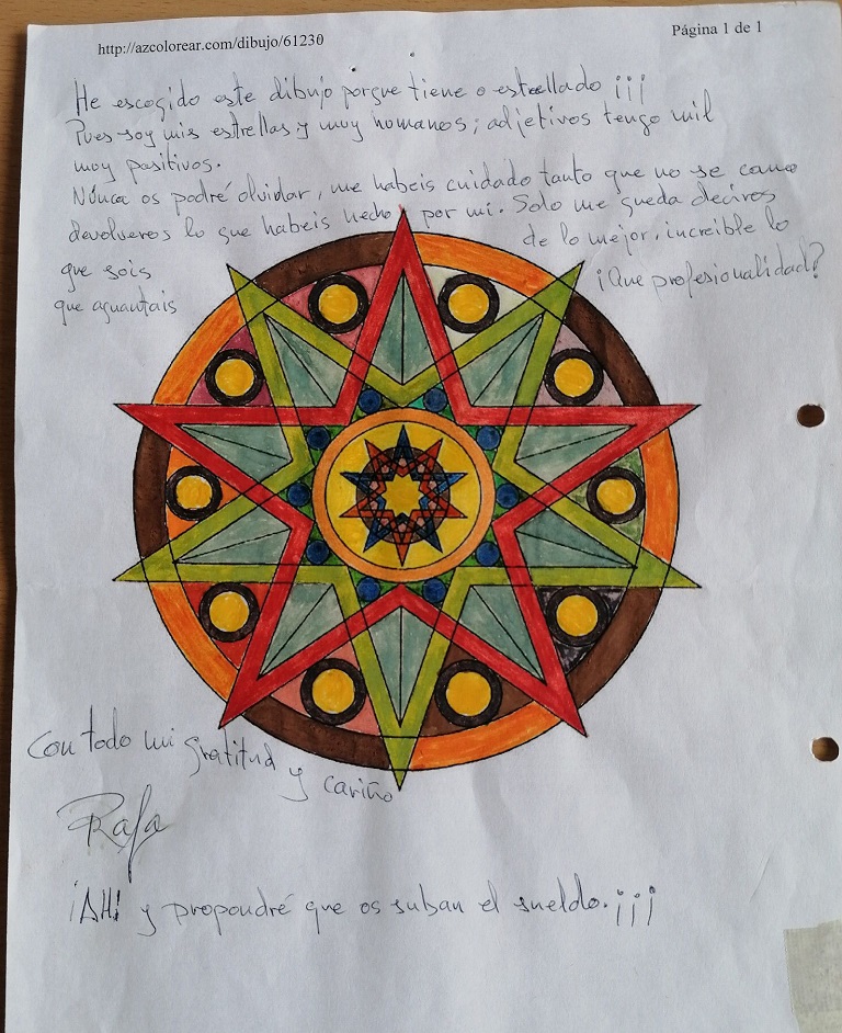 Este médico con vocación de ayudar, con templanza, siempre busca un poco de tiempo en sus horas de guardia para visitar a estos pacientes. Le gusta charlar con ellos, comentar las noticias que ven en el televisor, ver los trabajos que realizan en los talleres, saber algo más de sus inquietudes y proyectos vitales.