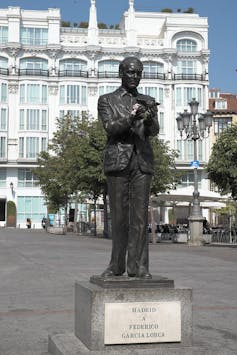 Estatua en Madrid dedicada a Federico García Lorca (frente al Teatro Español). GFreihalter / Wikimedia Commons, CC BY-SA