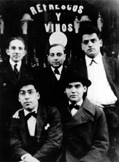 Benjamín Jarnés, Huberto Pérez de la Ossa, Luis Buñuel. Rafael Barradas y Federico García Lorca en Madrid, 1923. Wikimedia Commons